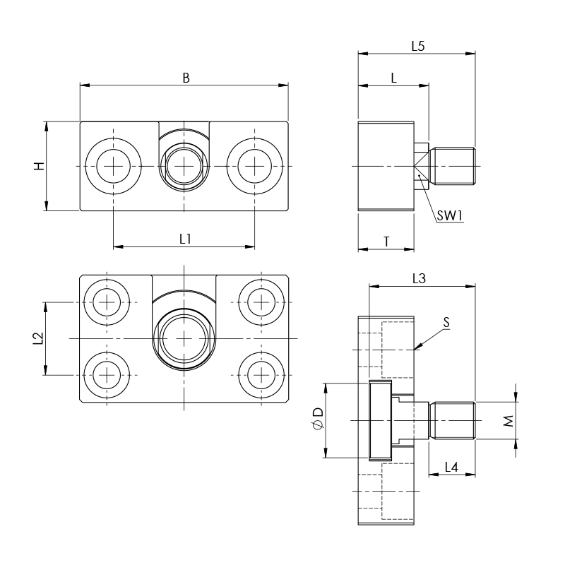 | Bezeichnung | Größe | D | L | L1 | L2 | L3 | L4 | L5 | B | H | T | S | SW1 | M | Ident-Nr. |